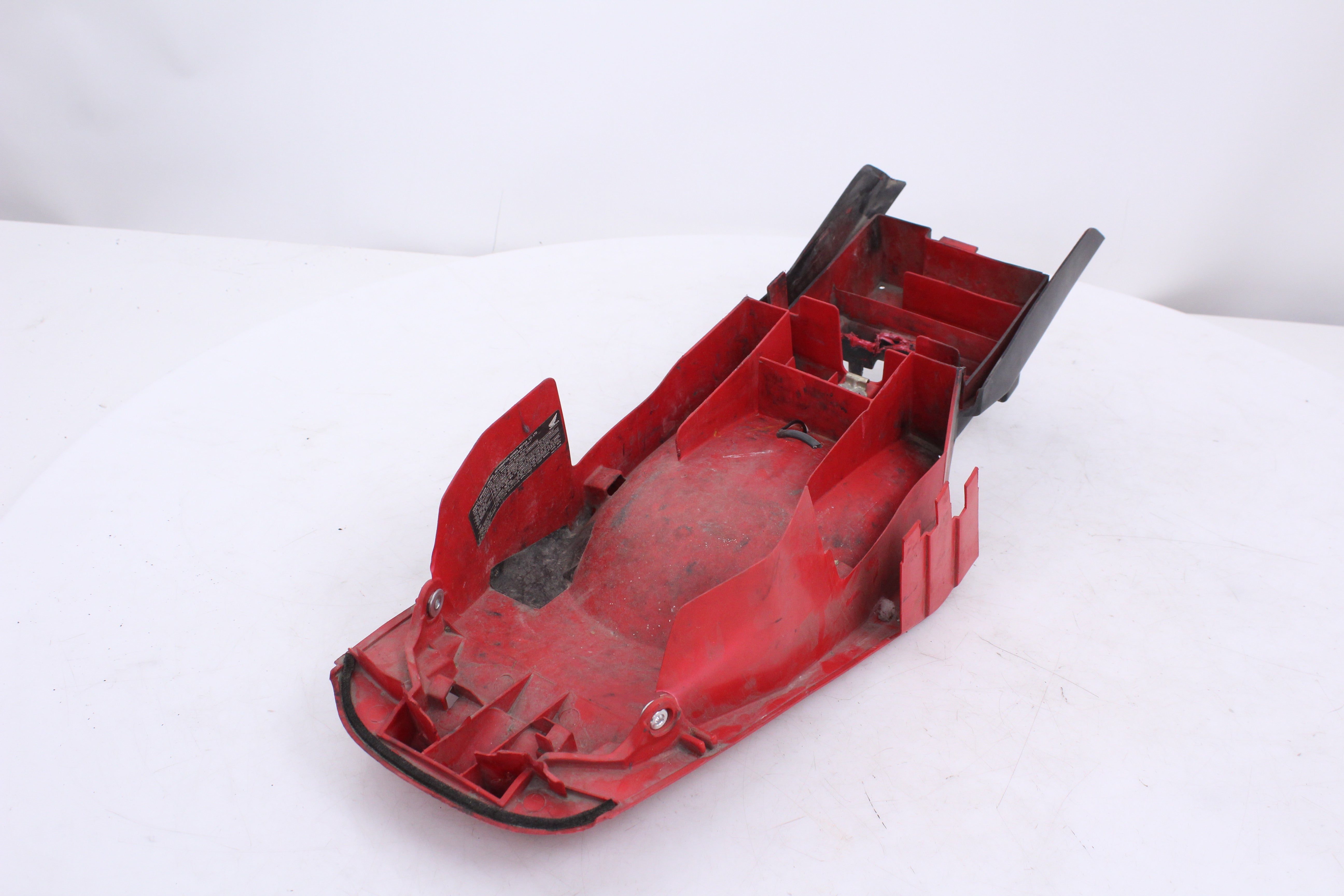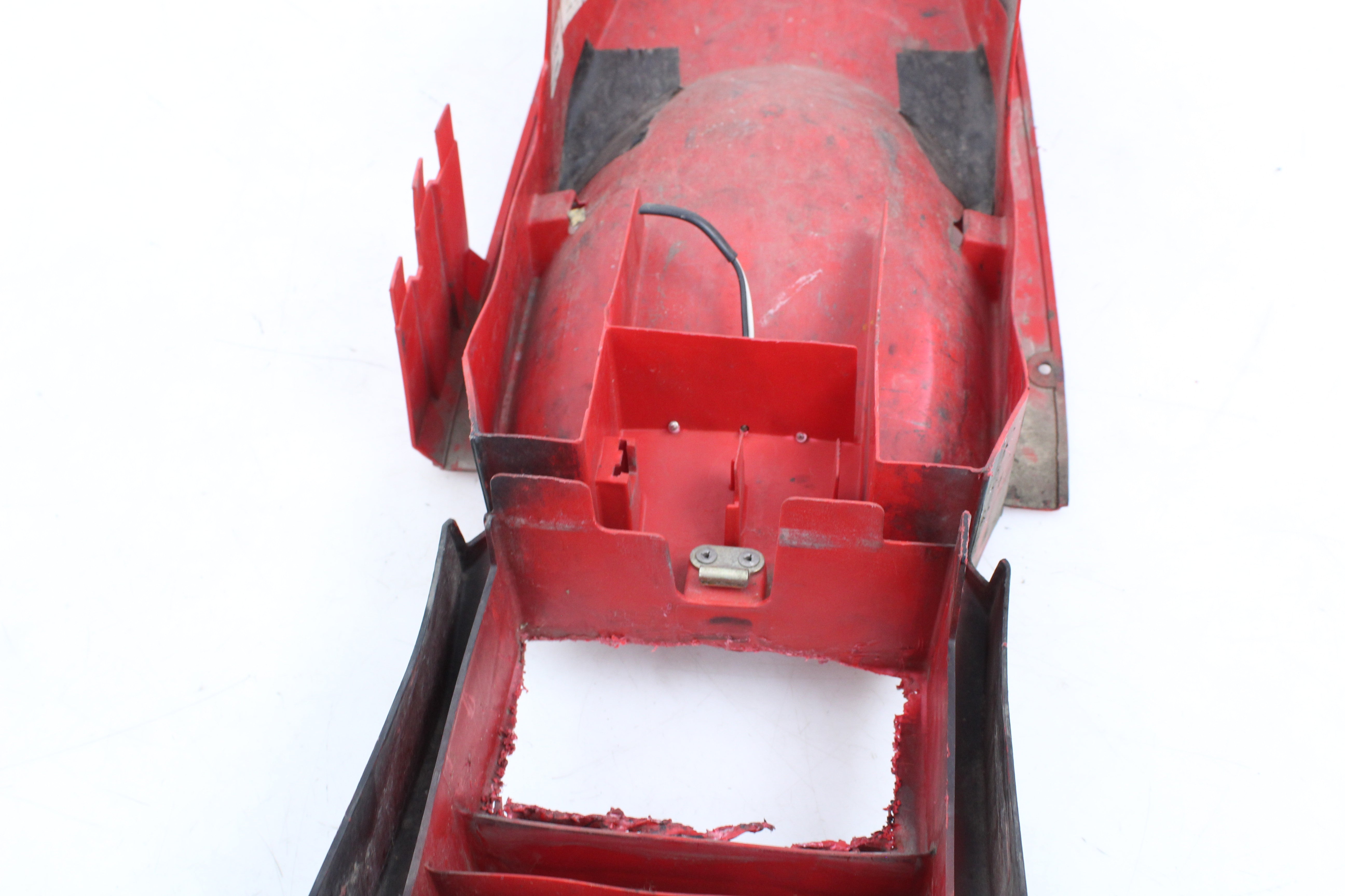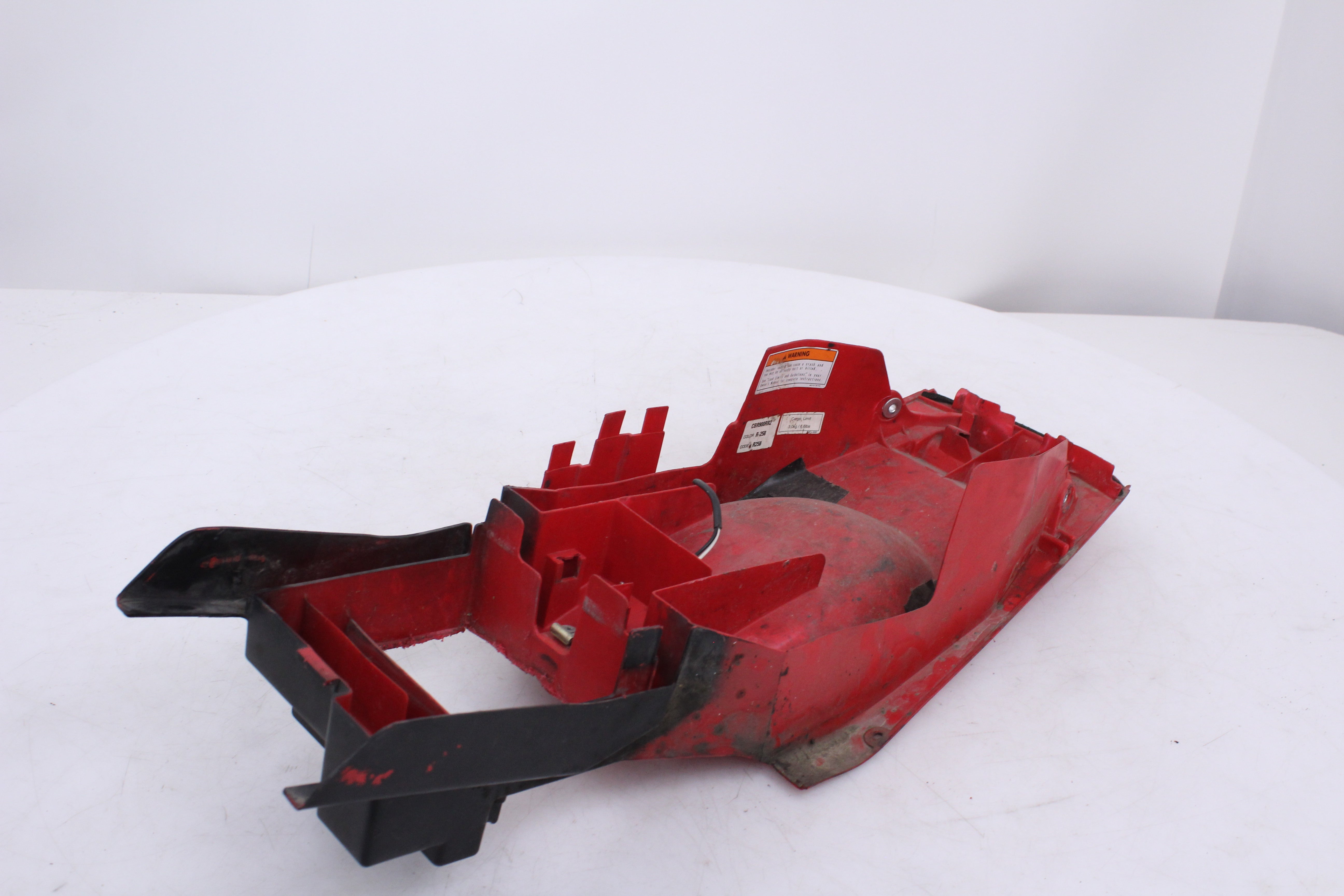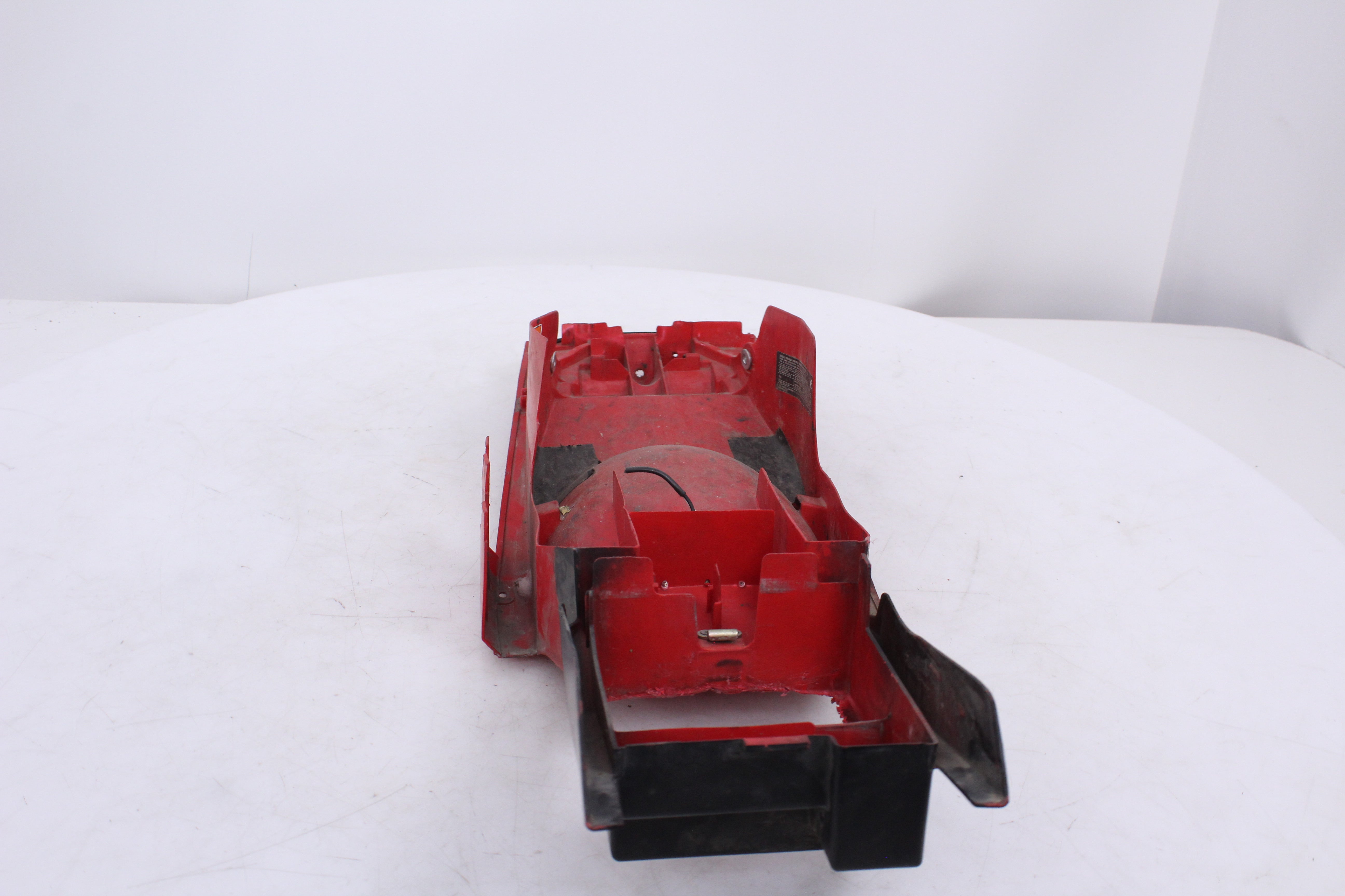 General Signs of Use, Battery Box Area has been removed/ cut out. Some Minor Cracks, Scuffs, and Scratches are visable. All mounting points are in good condition.