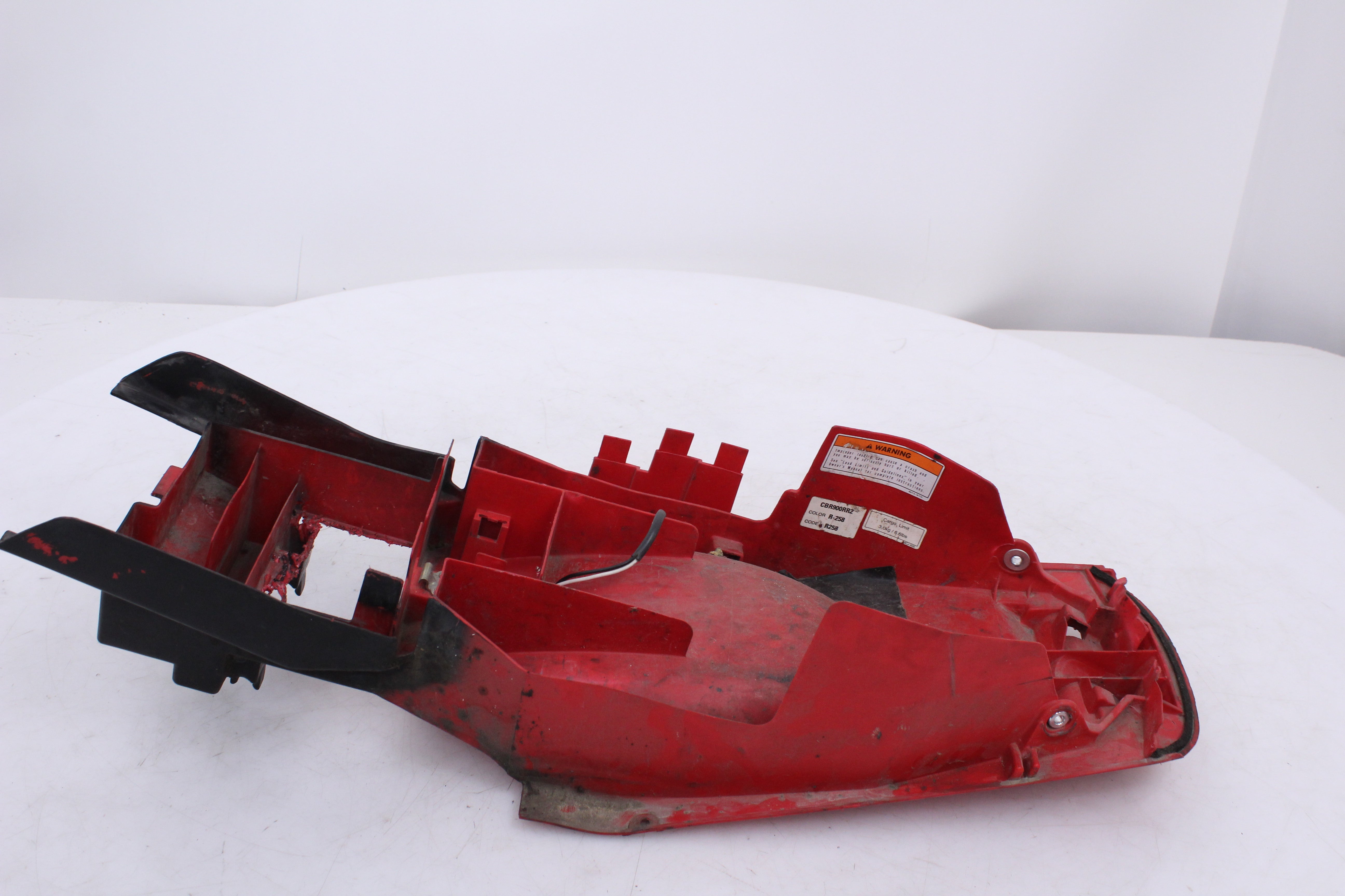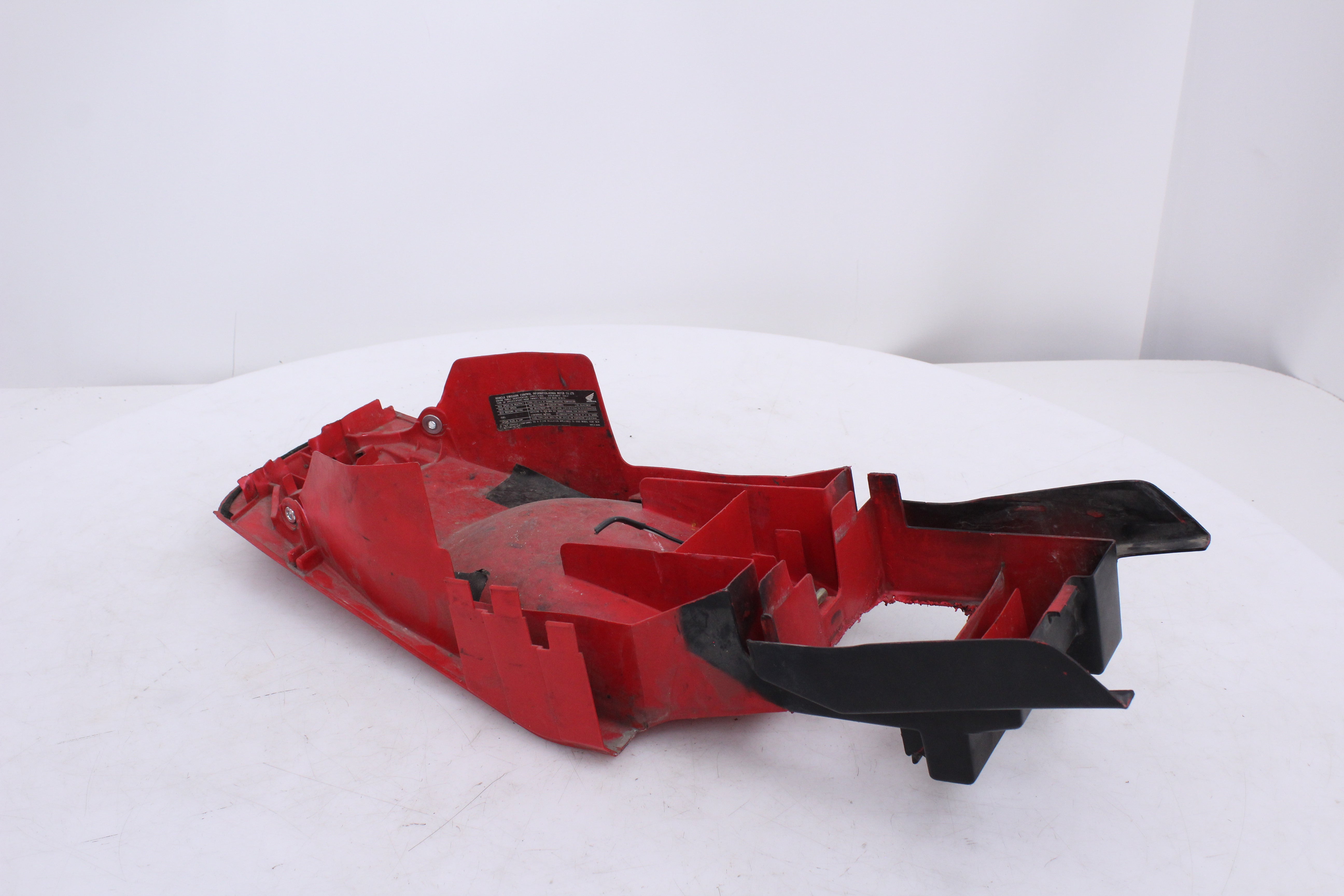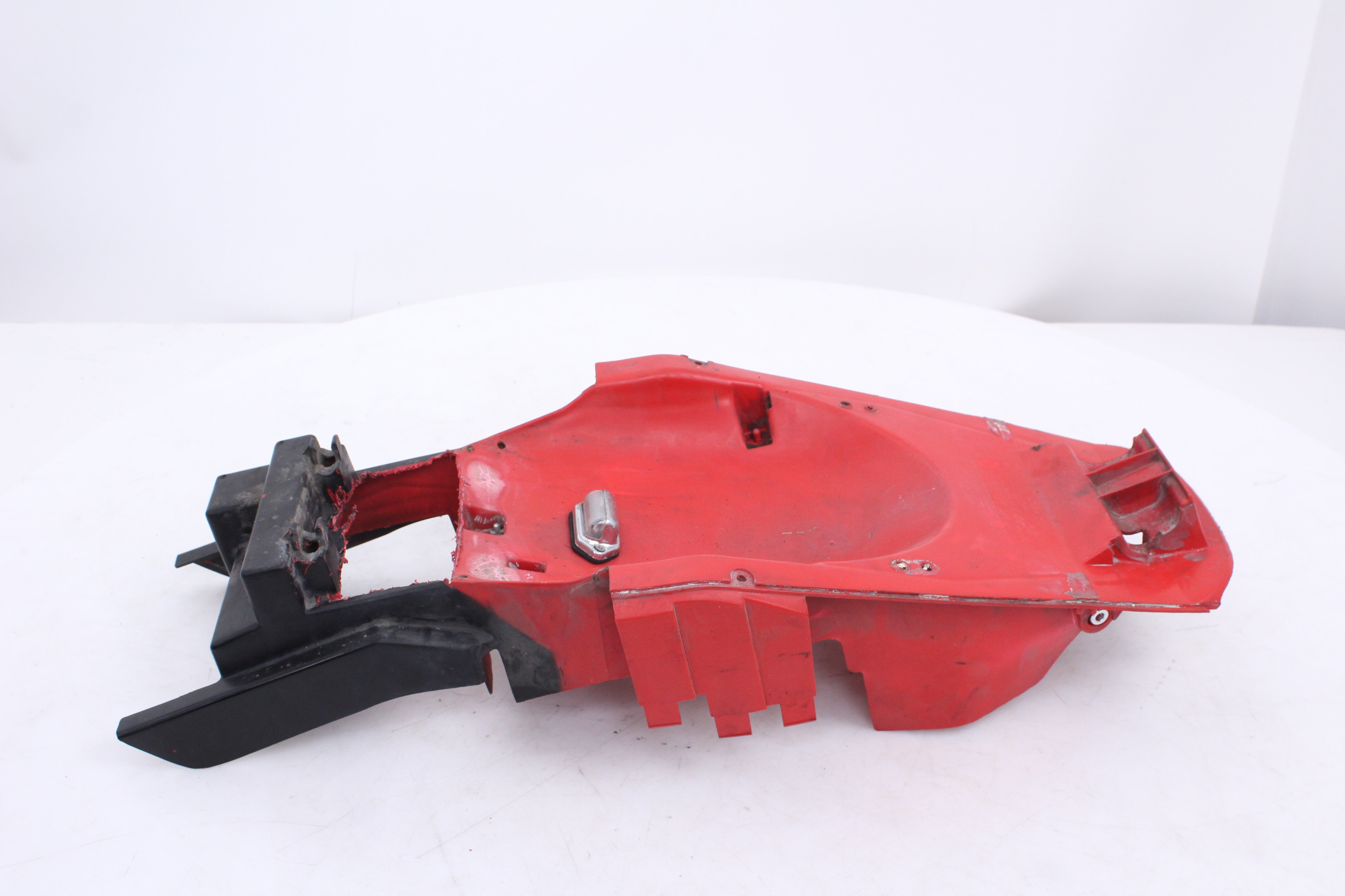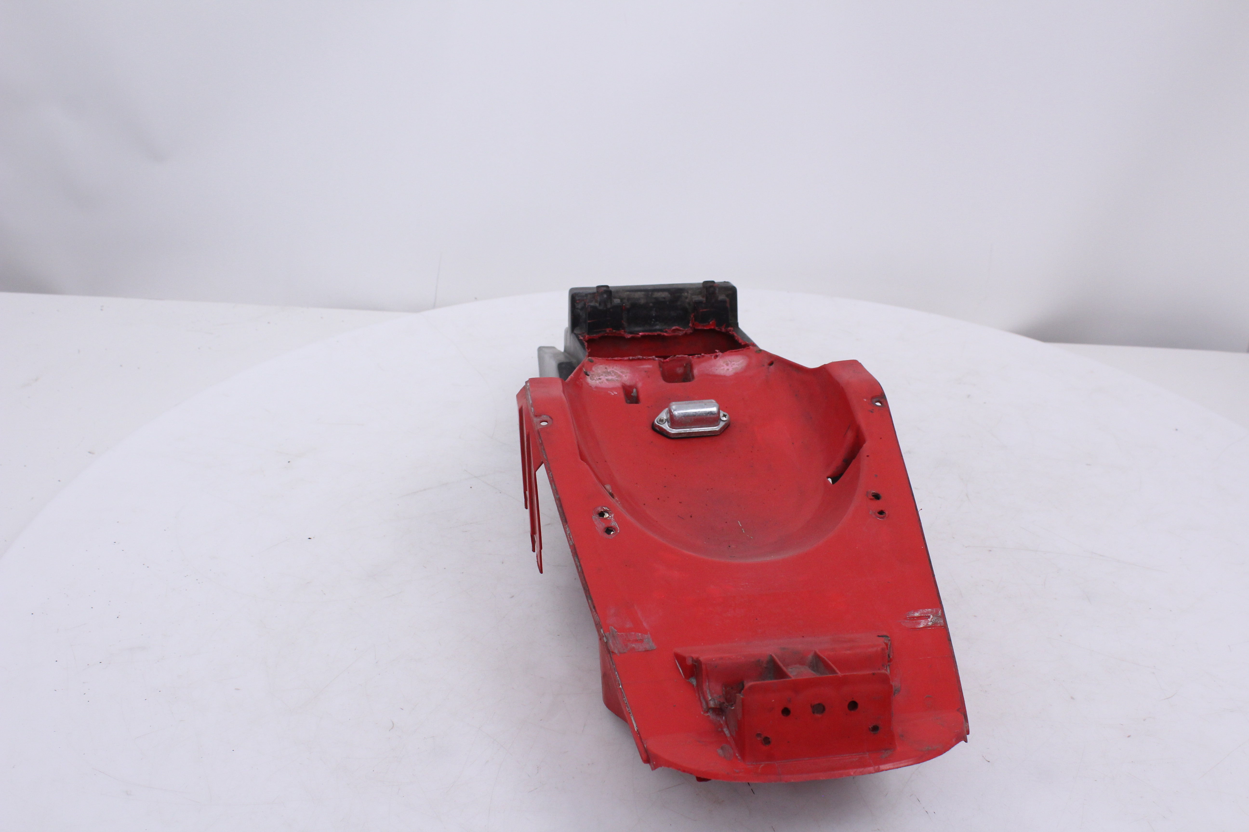General Signs of Use, Battery Box Area has been removed/ cut out. Some Minor Cracks, Scuffs, and Scratches are visable. All mounting points are in good condition.