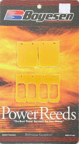 Product Name: WATERCRAFT POWER REEDSProduct Type: Power ReedsBrand: BOYESENMFG Part Number: 24Features: Performance enhancing OEM replacement reed petals Patented dual-stage design incorporates a specially shaped top reed and ported bottom reed Top reed is lightweight and resilient for crisp throttle response at low-mid rpm's Stiffer bottom reed is ported to provide maximum...