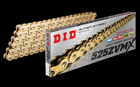 Product Name: SUPER STREET 525ZVMXG-100L X-RING CHAIN GOLDProduct Type: X-Ring ZVMX ChainBrand: D.I.DMFG Part Number: 525ZVMXG100ZDescription: D.I.D’s Super Street Series X-Ring Chains were designed with increased power transfer from the engine to the ground, greater resistance to stretching under load and overall improved performance that meets the demands of current large displacement street...