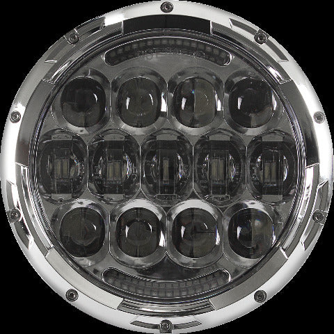Product Name: HEADLIGHT 7" CHROMEProduct Type: HeadlightsBrand: CYRONMFG Part Number: ABIG7-A6KCDescription: The new generation of Cyron ® 7" “Urban”™, now with 20% more power, is a wide angle headlight designed for city street riding. Perfect headlight when passing/fog lamps are not being used. Lights have built in white and amber Daytime Running Lights...