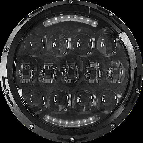 Product Name: HEADLIGHT 7" BLACKProduct Type: HeadlightsBrand: CYRONMFG Part Number: ABIG7-A6KDescription: The new generation of Cyron ® 7" “Urban”™, now with 20% more power, is a wide angle headlight designed for city street riding. Perfect headlight when passing/fog lamps are not being used. Lights have built in white and amber Daytime Running Lights...