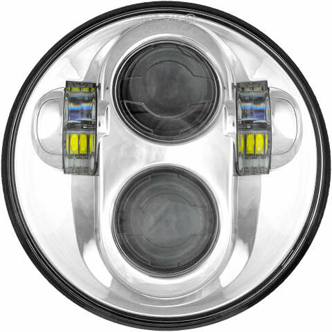 Product Name: HEADLIGHT 5.75" CHROMEProduct Type: HeadlightsBrand: CYRONMFG Part Number: ABIG5-A6KCDescription: The new generation of Cyron ® 7" “Urban”™, now with 20% more power, is a wide angle headlight designed for city street riding. Perfect headlight when passing/fog lamps are not being used. Lights have built in white and amber Daytime Running Lights...