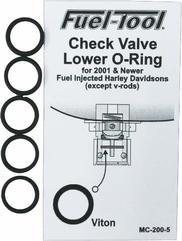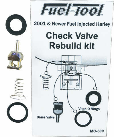 Product Name: CHECK VALVE REBUILD KITProduct Type: Check Valve Rebuild KitBrand: FUEL TOOLMFG Part Number: MC300Features: Eliminate the need for replacing expensive check valve and fuel line when only a rebuild is needed Fits 2001 and newer fuel injected Harley Davidson models Long lasting, high quality DuPont Viton O-rings, solid brass nickel...
