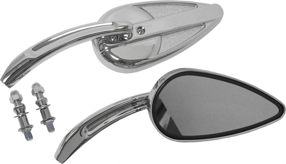 These stylish die cast mirrors are small enough to look cool but big enough to see whats coming up behind you! Available in chrome or satin black finish. Sold in pairs.