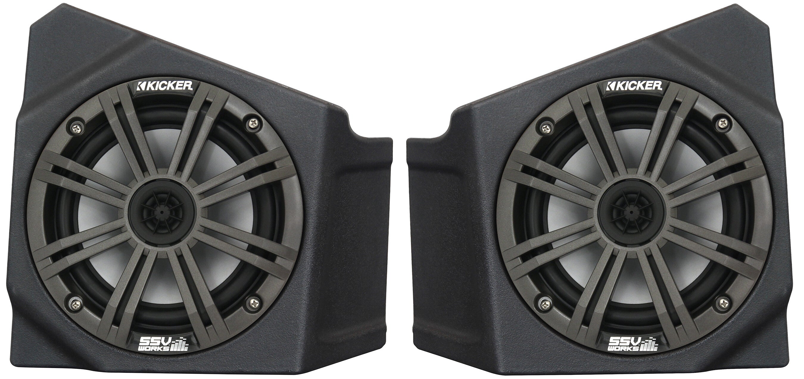 SSV Works custom molded Cage Mount Pods are designed for 6.5" speakers and can be used when you need more sound in your Side by Side. Unlike wakeboard towers, our mini pods are designed to provide sound to the passengers without blocking visibility. They are finished in a black texture and is stylized to match factory interior textures and can be custom painted to match your color scheme. Brand-new redesigned dual clamping system allows you 360-degree rotation while on the cage. Unlike other cage pods where you need to find its position before the clamp goes on.Features: