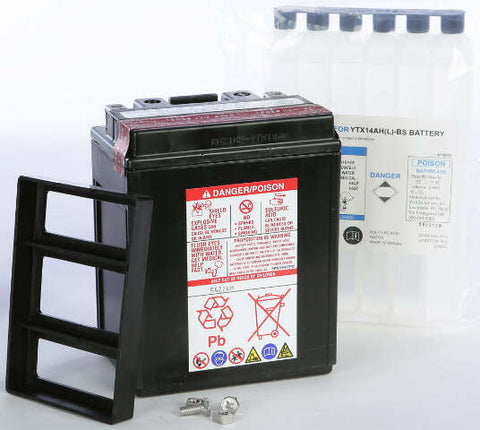 Product Name: BATTERY YTX14AH-BS MAINTENANCE FREEProduct Type: AGM Maintenance Free BatteryBrand: YUASAMFG Part Number: YUAM62H4AFeatures: Maintenance Free – no need to add water, but periodic charging required when not in use Absorbed Glass Mat (AGM) Separators – an advanced battery technology that eliminates the need to ever add water Advanced lead-calcium technology...