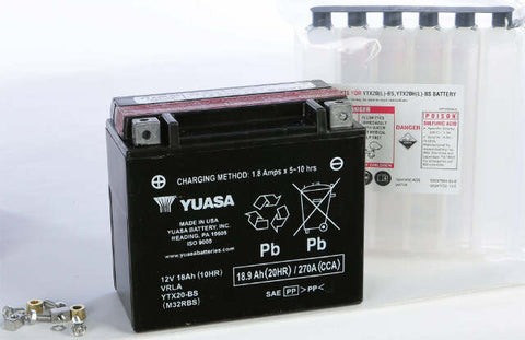 Product Name: BATTERY YTX20-BS MAINTENANCE FREEProduct Type: AGM Maintenance Free BatteryBrand: YUASAMFG Part Number: YUAM32RBSFeatures: Maintenance Free – no need to add water, but periodic charging required when not in use Absorbed Glass Mat (AGM) Separators – an advanced battery technology that eliminates the need to ever add water Advanced lead-calcium technology...