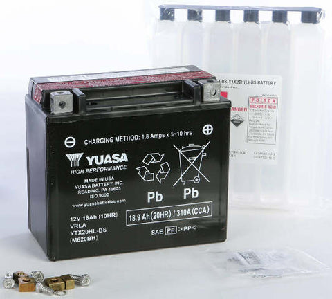 Product Name: BATTERY YTX20HL-BS MAINTENANCE FREEProduct Type: AGM Maintenance Free BatteryBrand: YUASAMFG Part Number: YUAM620BHFeatures: Maintenance Free – no need to add water, but periodic charging required when not in use Absorbed Glass Mat (AGM) Separators – an advanced battery technology that eliminates the need to ever add water Advanced lead-calcium technology...