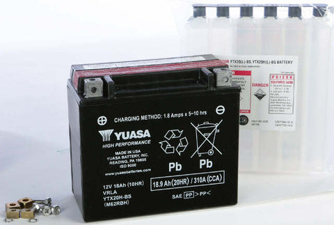 Product Name: BATTERY YTX20H-BS MAINTENANCE FREEProduct Type: AGM Maintenance Free BatteryBrand: YUASAMFG Part Number: YUAM62RBHFeatures: Maintenance Free – no need to add water, but periodic charging required when not in use Absorbed Glass Mat (AGM) Separators – an advanced battery technology that eliminates the need to ever add water Advanced lead-calcium technology...