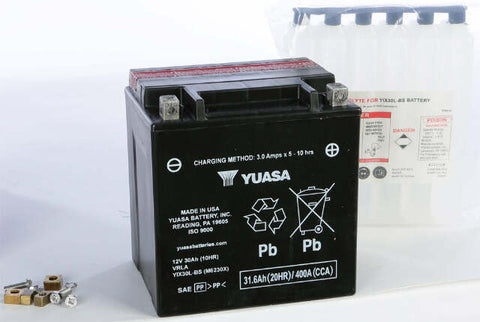 Product Name: BATTERY YIX30L-BS MAINTENANCE FREEProduct Type: AGM Maintenance Free BatteryBrand: YUASAMFG Part Number: YUAM6230XFeatures: Maintenance Free – no need to add water, but periodic charging required when not in use Absorbed Glass Mat (AGM) Separators – an advanced battery technology that eliminates the need to ever add water Advanced lead-calcium technology...